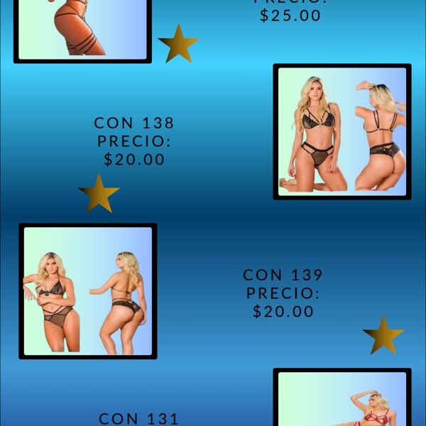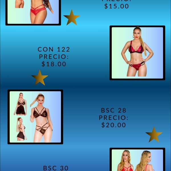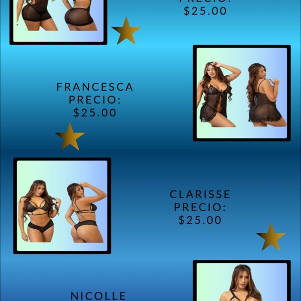 Despierta la fantasía con nuestra colección de lencería diseñada para resaltar tu sensualidad y confianza. Encuentra conjuntos atrevidos, delicados encajes, transparencias seductoras y piezas que se adaptan a todos los cuerpos y estilos.